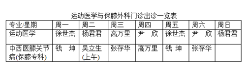 门诊地址:2号楼一楼A1区1诊室-运动医学门诊